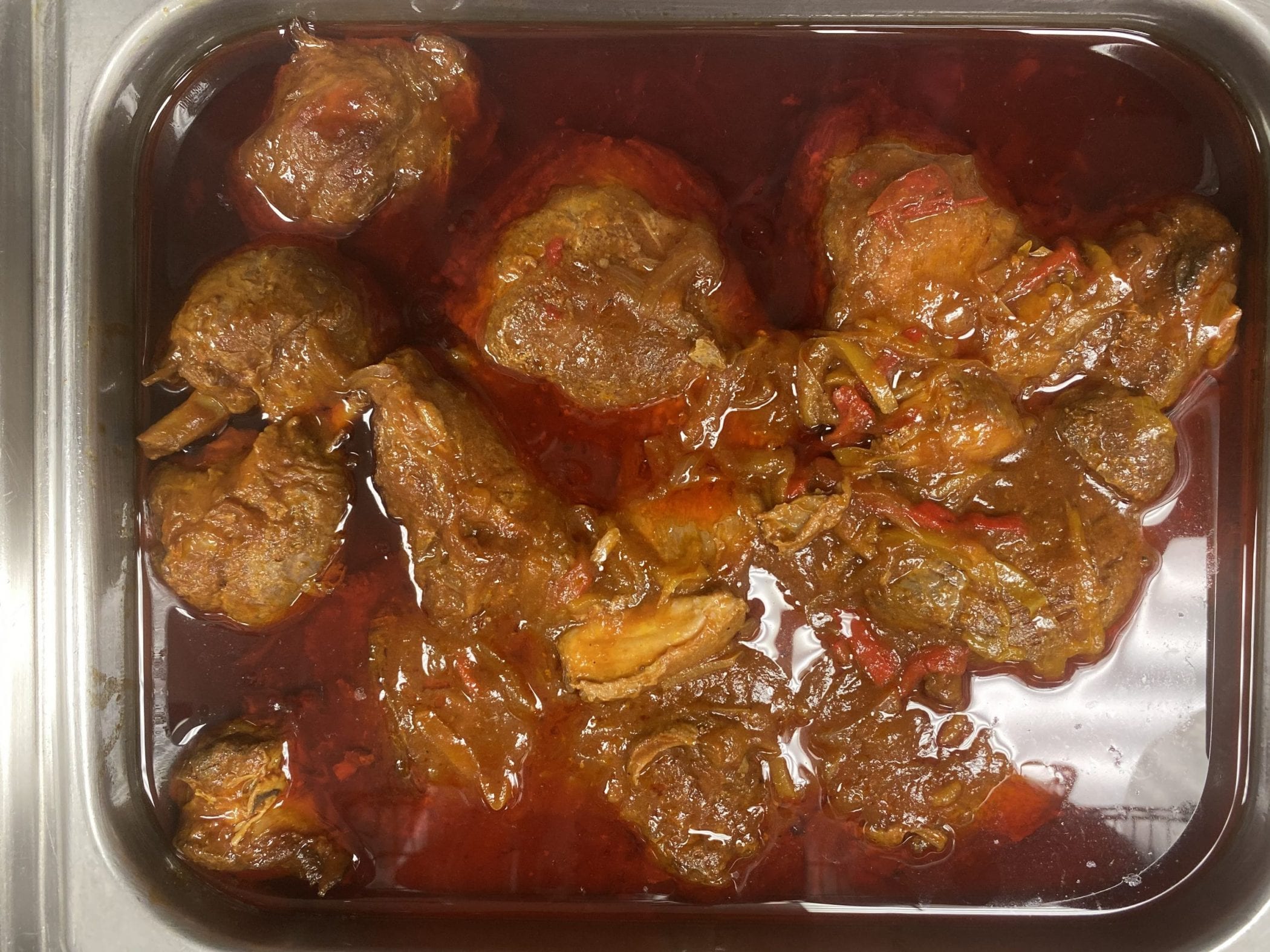 Escovitch is a delightfully unique taste because of the combination of spices and balsamic vinegar. Lightly seasoned red snapper drenched in sauteed peppers and onions in a vinegar sauce. This classic Jamaican dish requires you to maneuver around those tiny fish bones.
