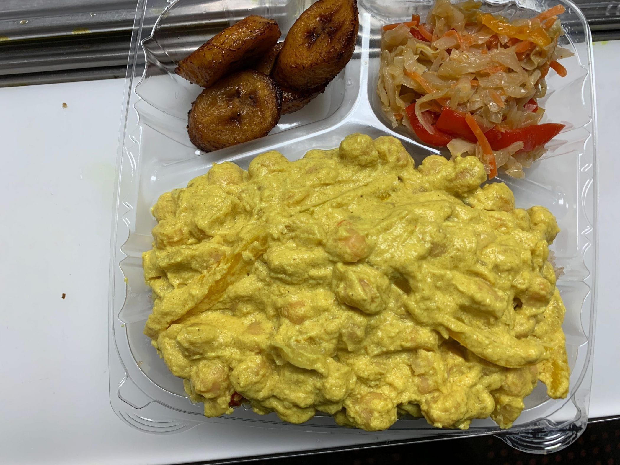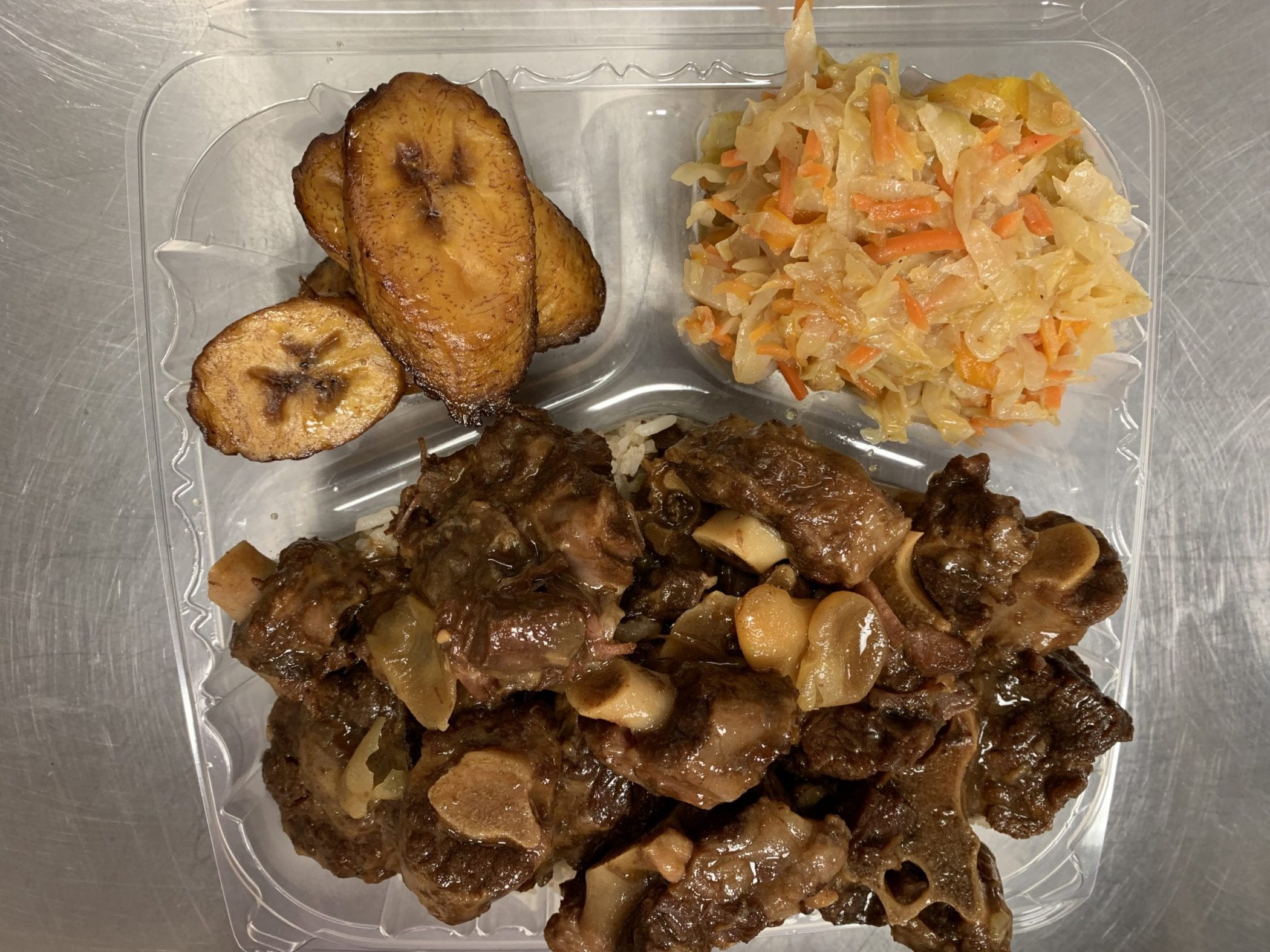 White Rice / Rice and Peas Steamed Cabbage and Carrots and Plantains