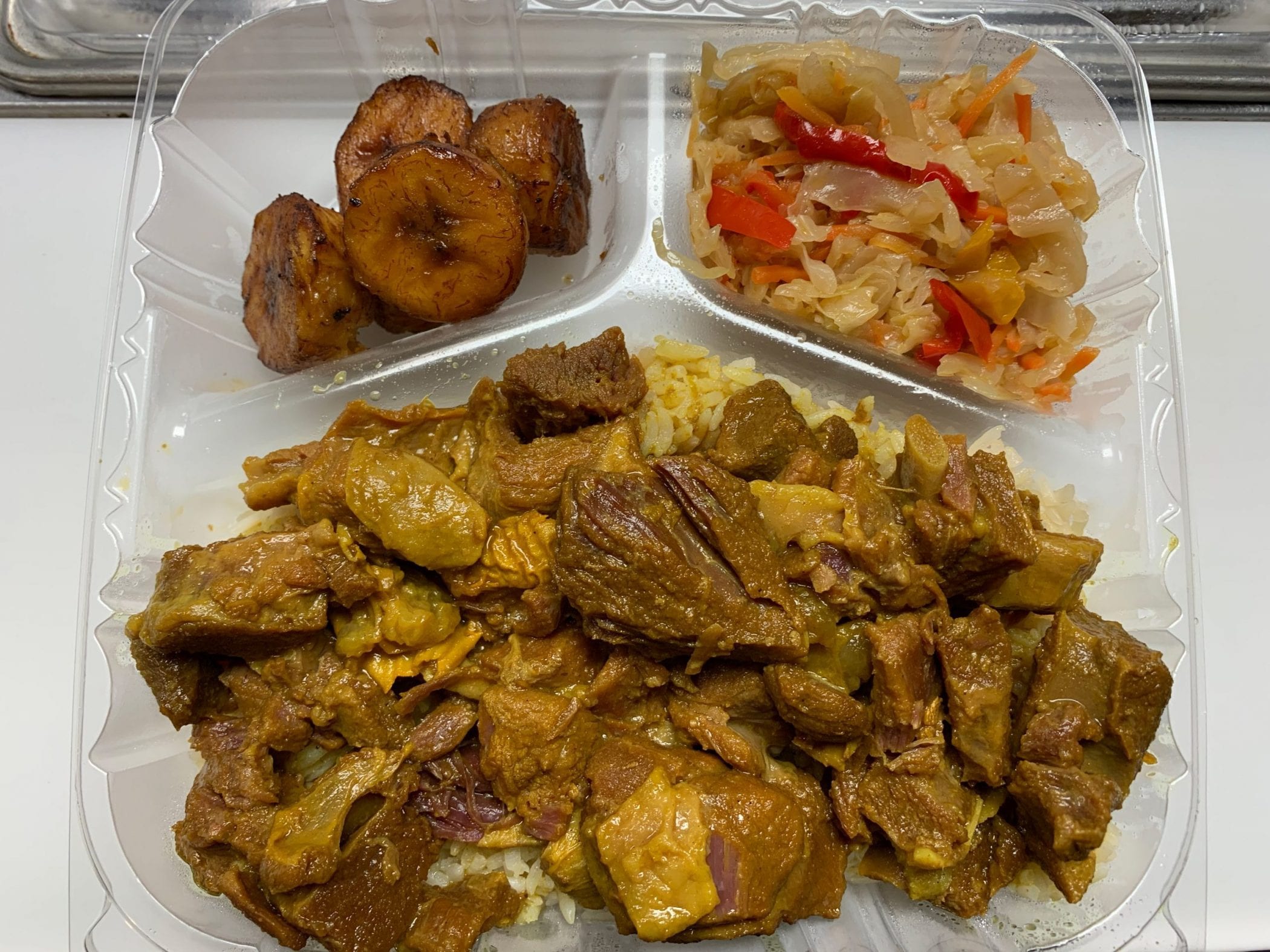 Our goat meat is succulent tender and rich with less saturated fat, calories, and cholesterol than other red meats. Chunky pieces of the goat are slowly simmered in aromatic blend garlic, allspice thyme, onions, and with Jamaican curry taking center stage until the sauce is thick and creamy. All of the flavors melt into the goat meat and creates a really wonderful dish after a few hours.