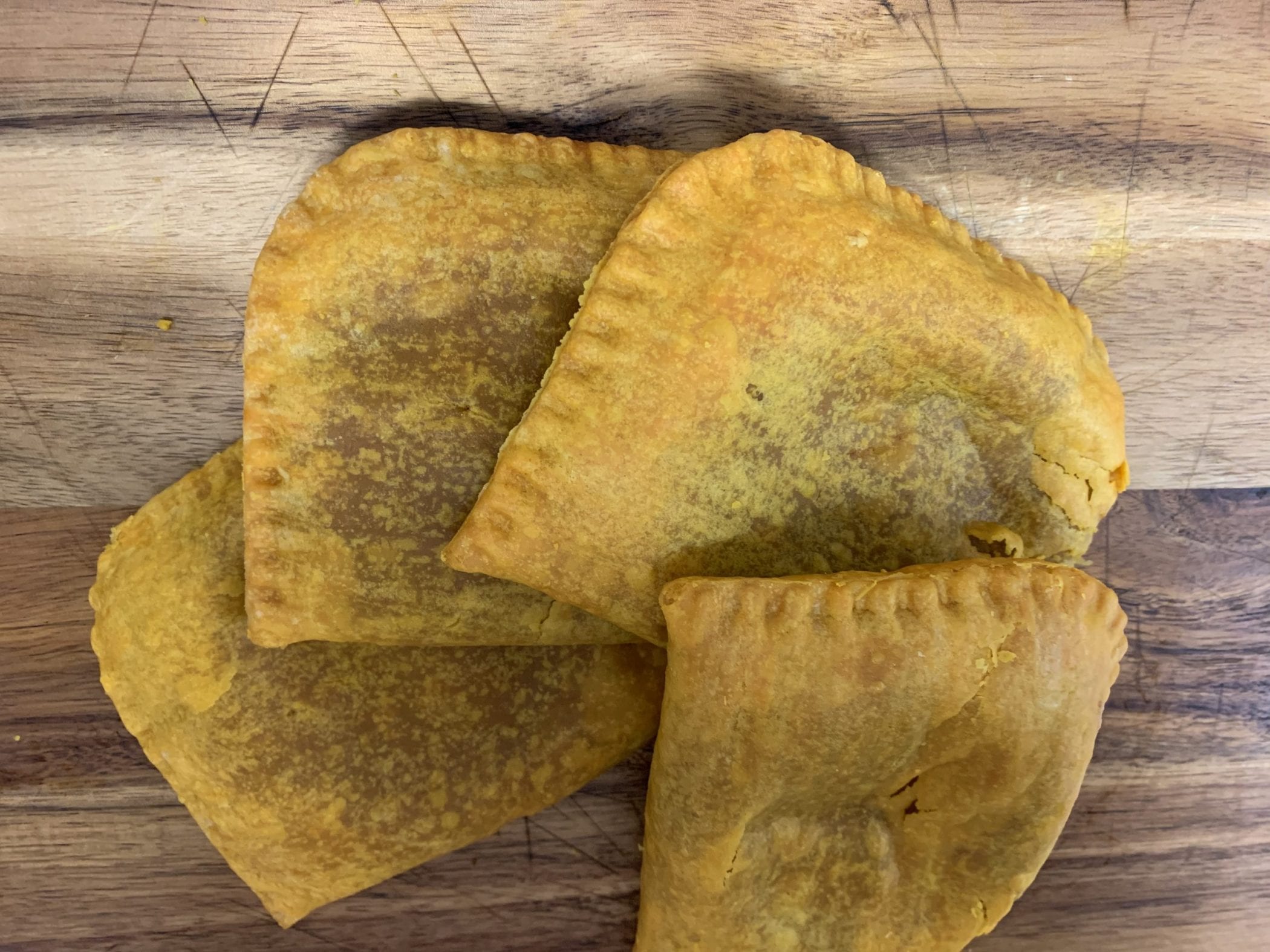 The Patty is a pastry that contains various fillings and spices baked inside a flaky shell, often tinted golden yellow with an egg yolk mixture or turmeric. It is made like a turnover, but is more savory and filled with meat.