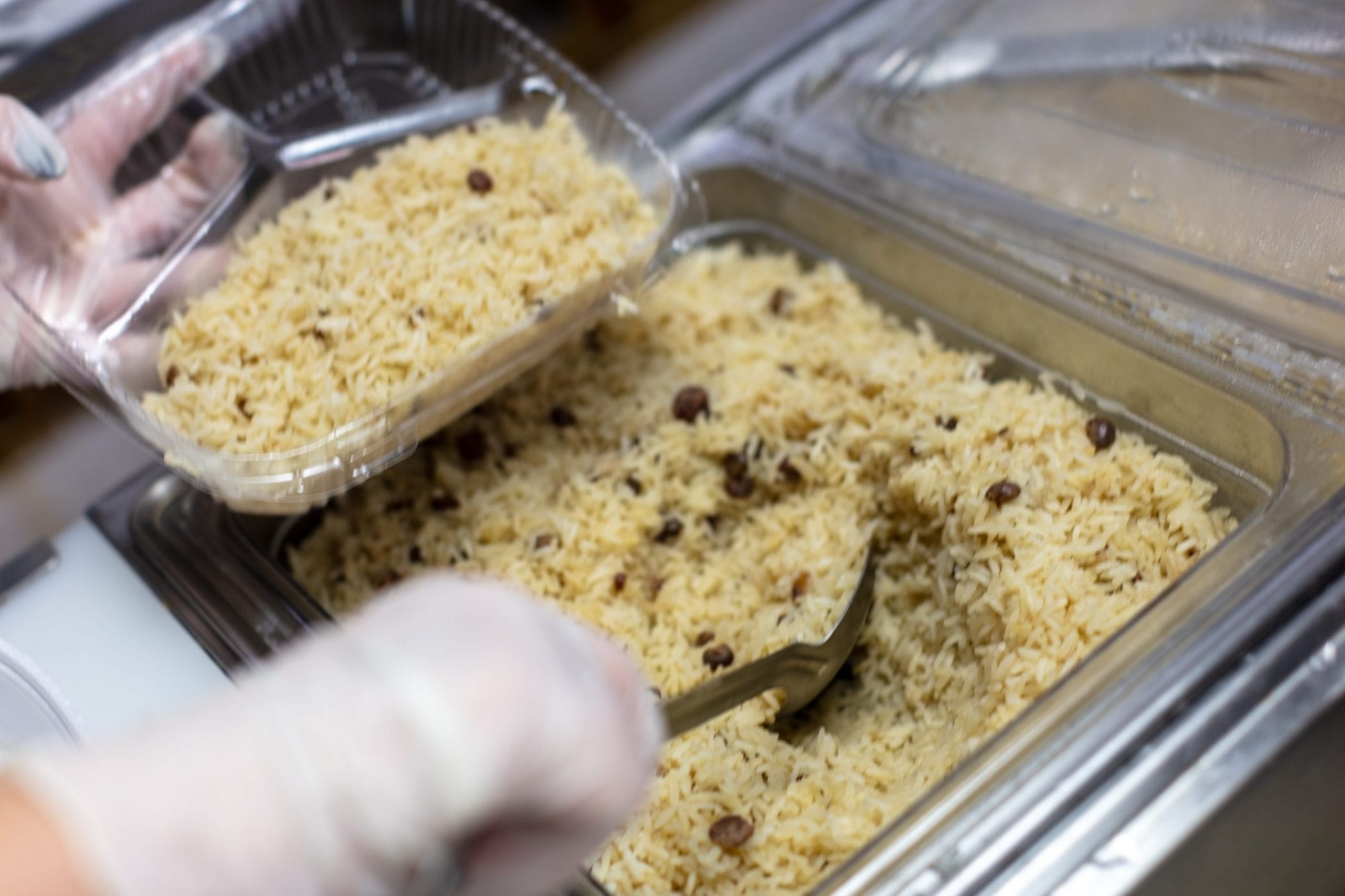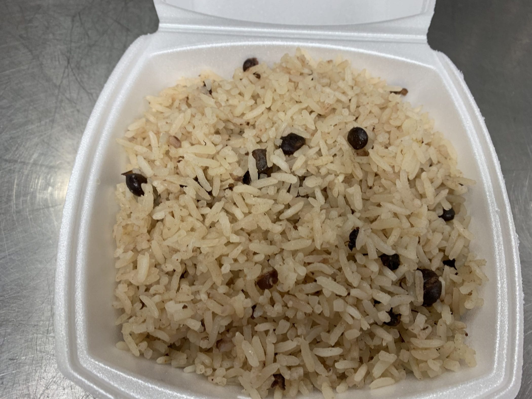 Our dish is made with rice and pigeon peas (known as gungo peas) the combination of grain and a legume forming a complete protein; compare to rice and red peas. Scotch bonnet pepper, thyme, scallions, and coconut milk are then added along with the rice and left to simmer until cooked.